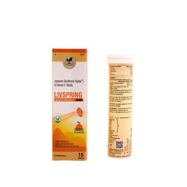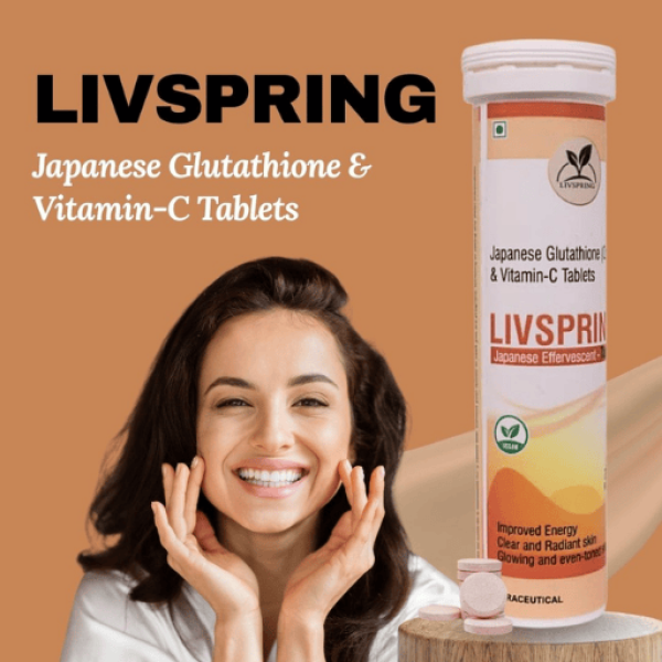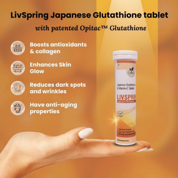 Experience radiant, healthy skin from within with LivSpring Japanese L-Glutathione Tablets, enriched with patented OPITAC™ Glutathione and Vitamin C for advanced skin brightening, pigmentation reduction, and antioxidant protection.